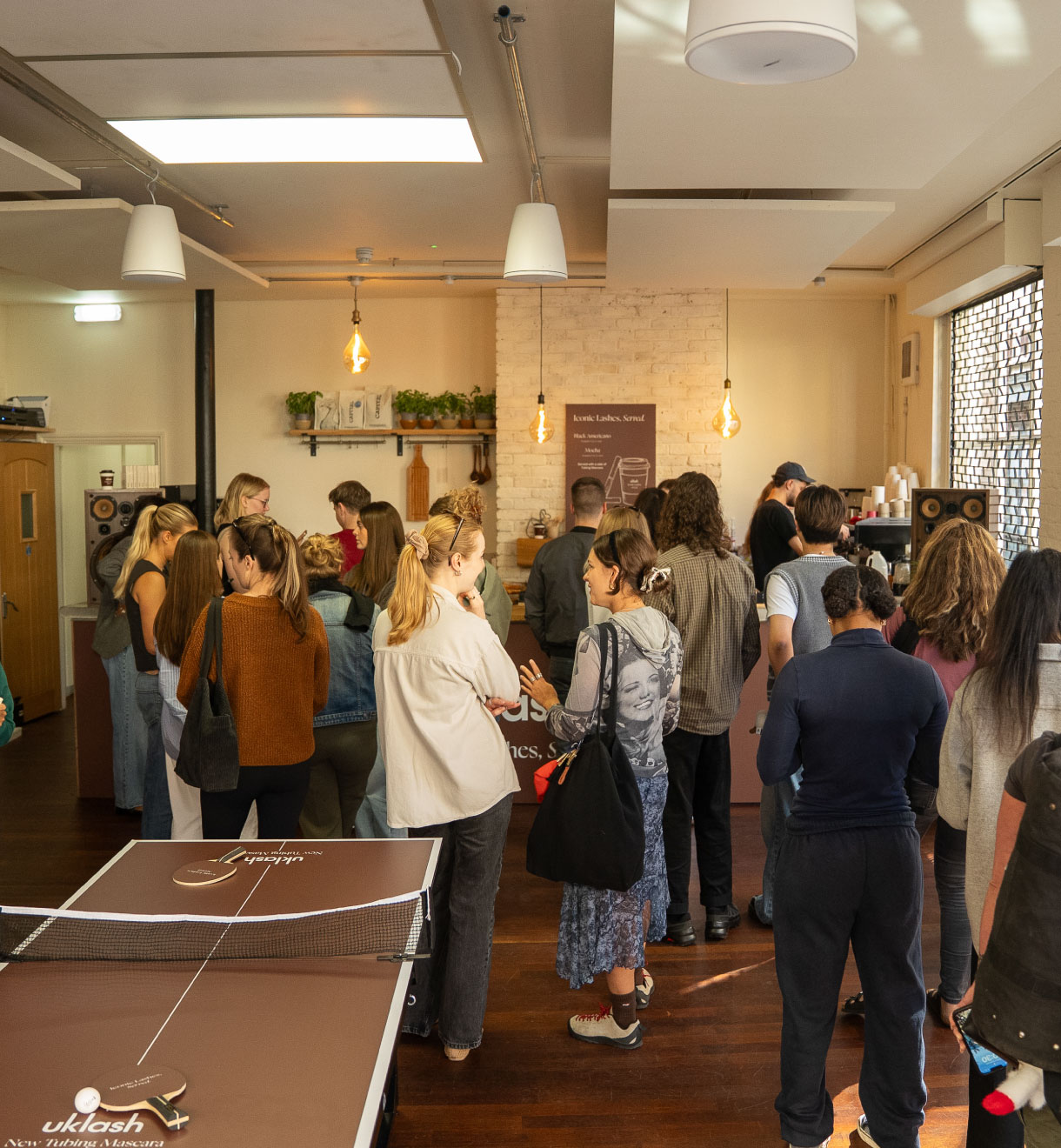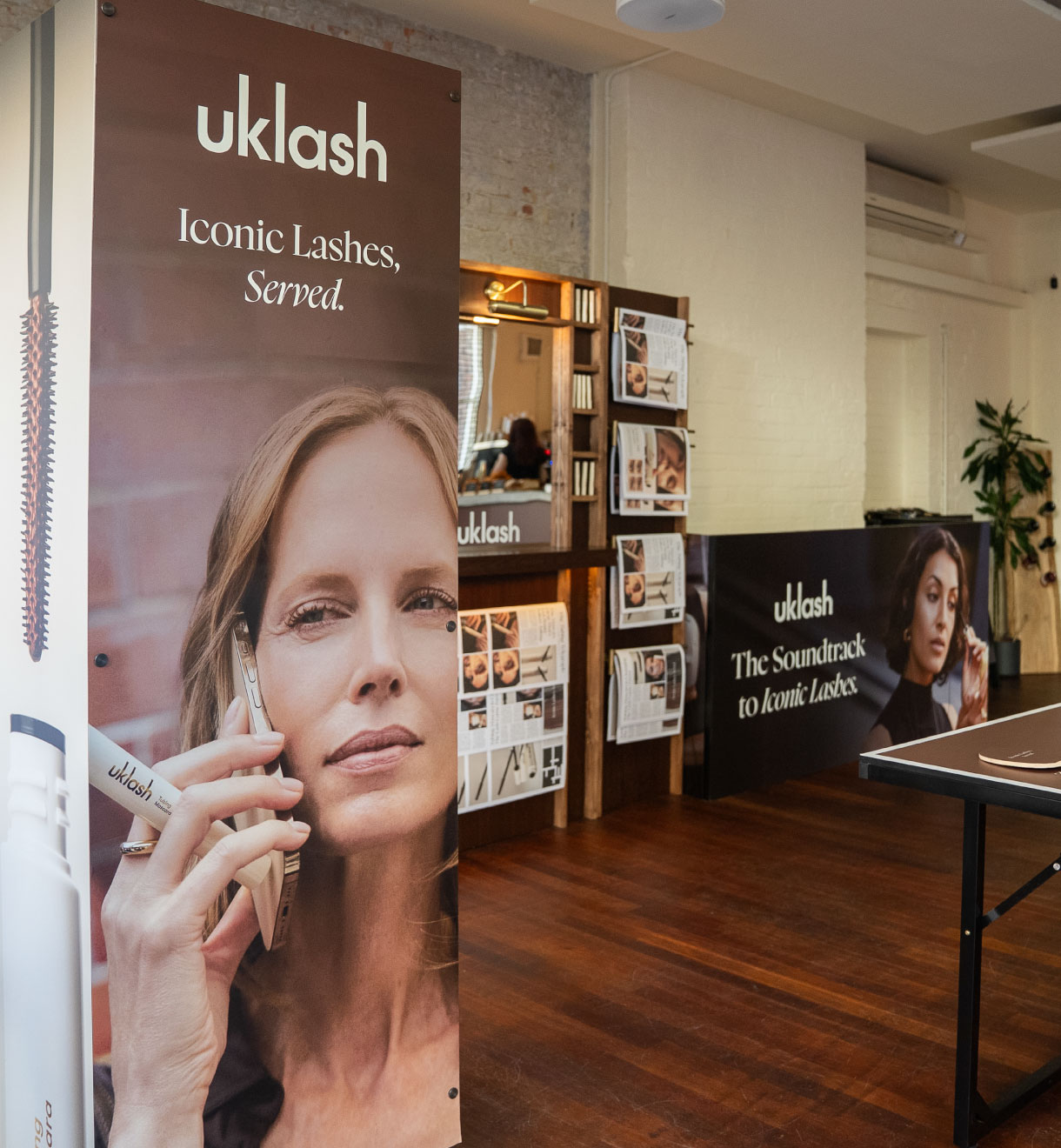 The event began on September 4th as a one-night, exclusive invitation for Influencers and PR professionals. Everything inside the store was branded with UKLash symbols, including newspapers and the ping pong table. Invitees were asked to wear either black or mocha outfits to match the new products.